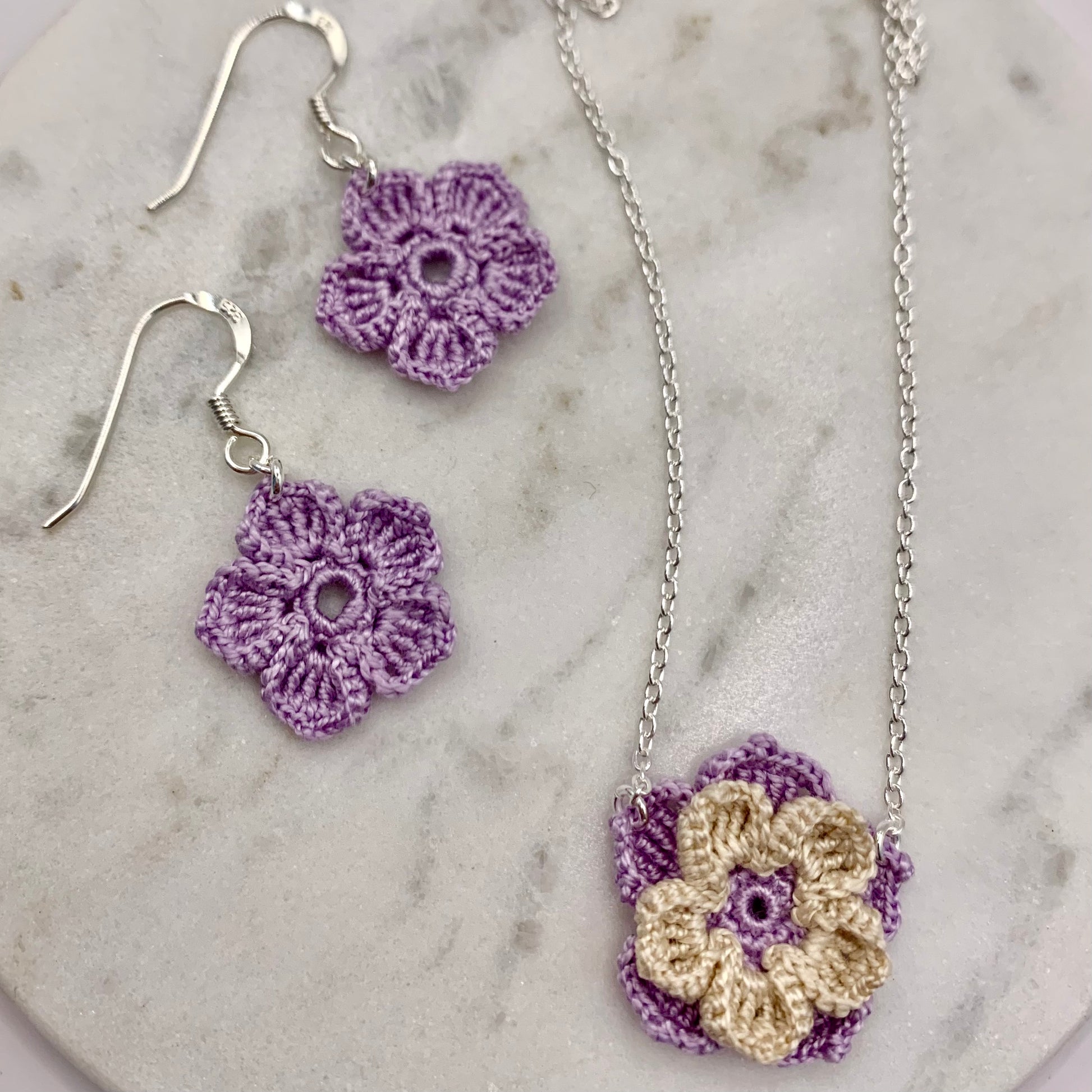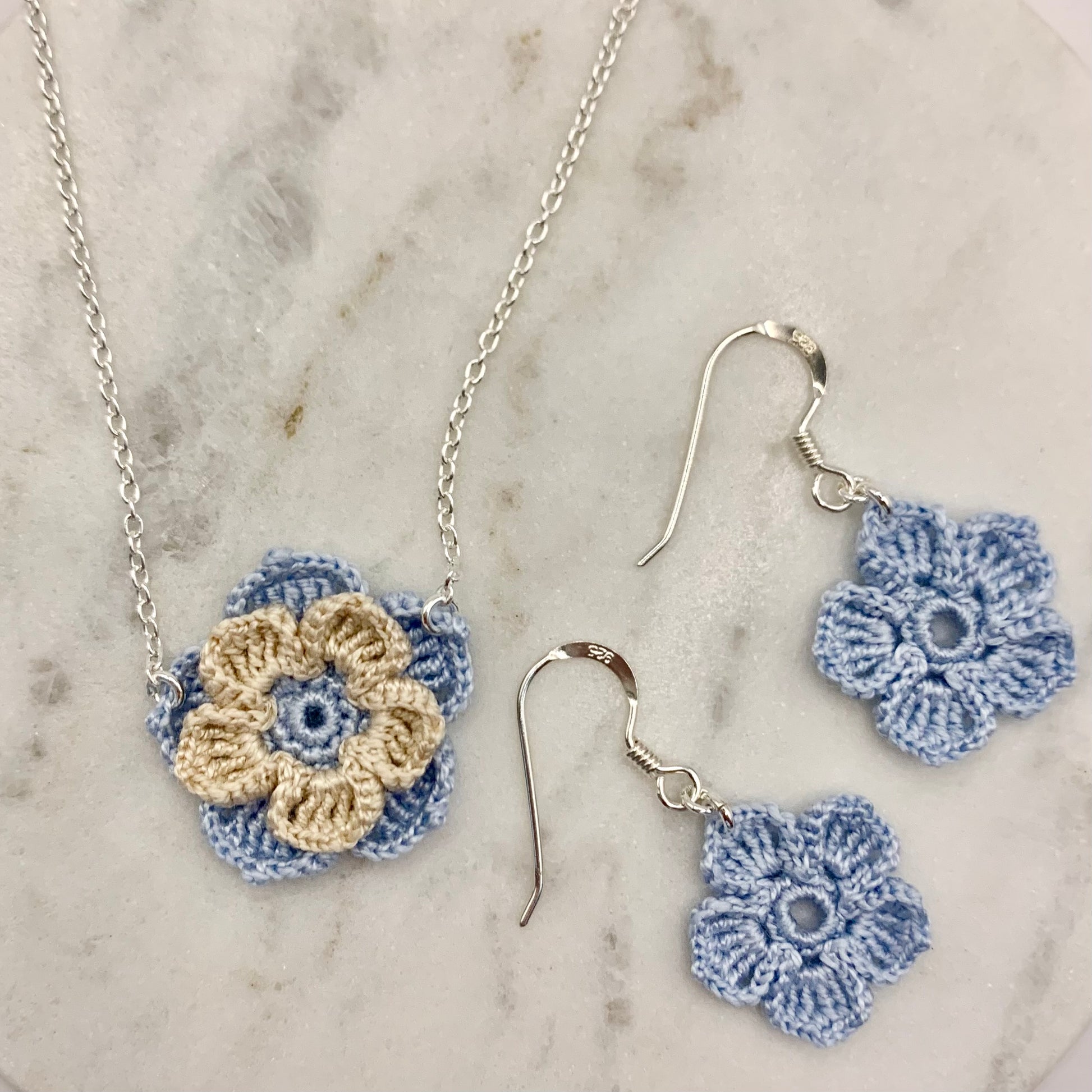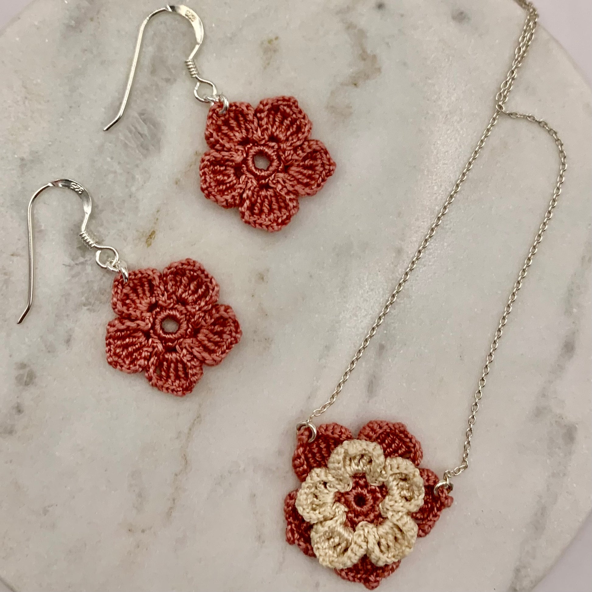 Aquest conjunt inclou les arracades Pètal, unes flors senzilles i minimalistes de tonalitats pastel, i el collaret Cristina, una flor amb més detalls i doble capa de pètals, feta amb el mateix color que les arracades, combinat amb el cru. Si adquireixes el conjunt, rebràs les joies en una mateixa caixeta, ideal per fer un regal especial.