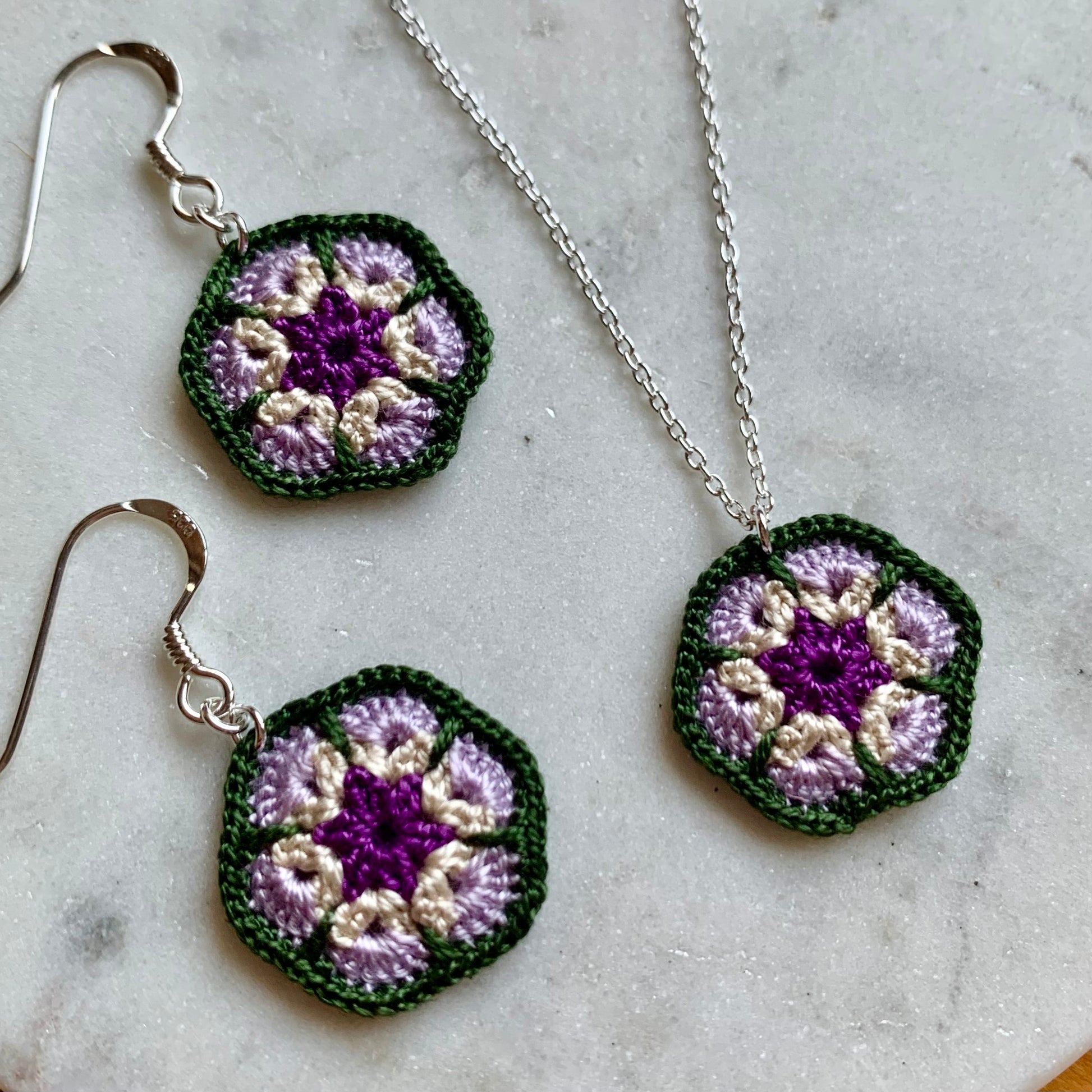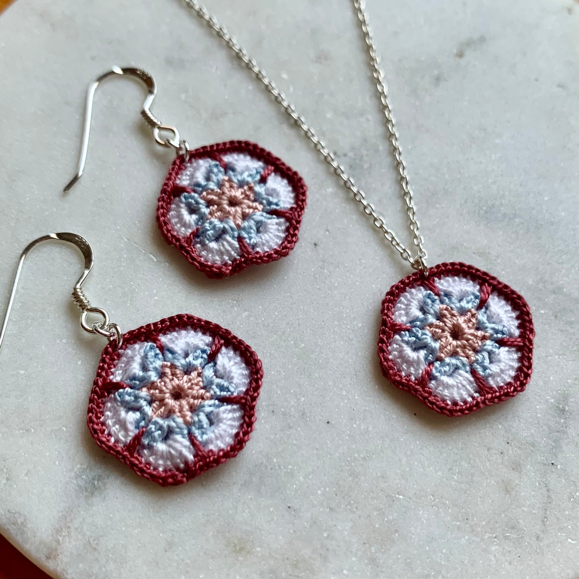 Les arracades Xerinola i el collaret Xerinola a un preu especial: flors d'estil mandala de diferents colors, fetes amb fil de cotó i un ganxet de 0,6 mil·límetres. Els ganxos i la cadena són de plata 925. Les arracades mesuren 3,7 centímetres d'allargada i la cadena del collaret, 45 centímetres. Si adquireixes el conjunt, rebràs les joies en una mateixa caixeta, ideal per a regalar.